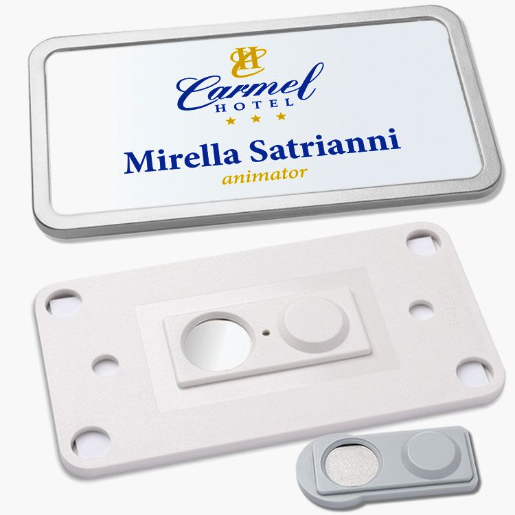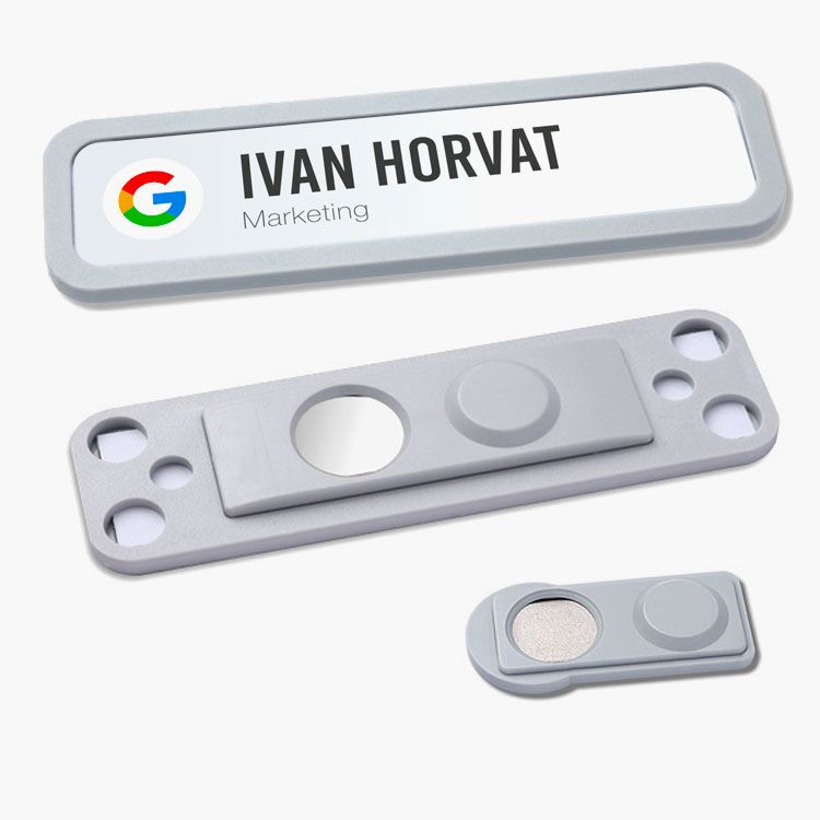 Oukviren kvalitetni ID bedž ili Name Tag pločica sa snažnom magnetnom kopčom za identifikaciju zaposlenika u tri dimenzije. Jednostavna izmjena kartice za ime.